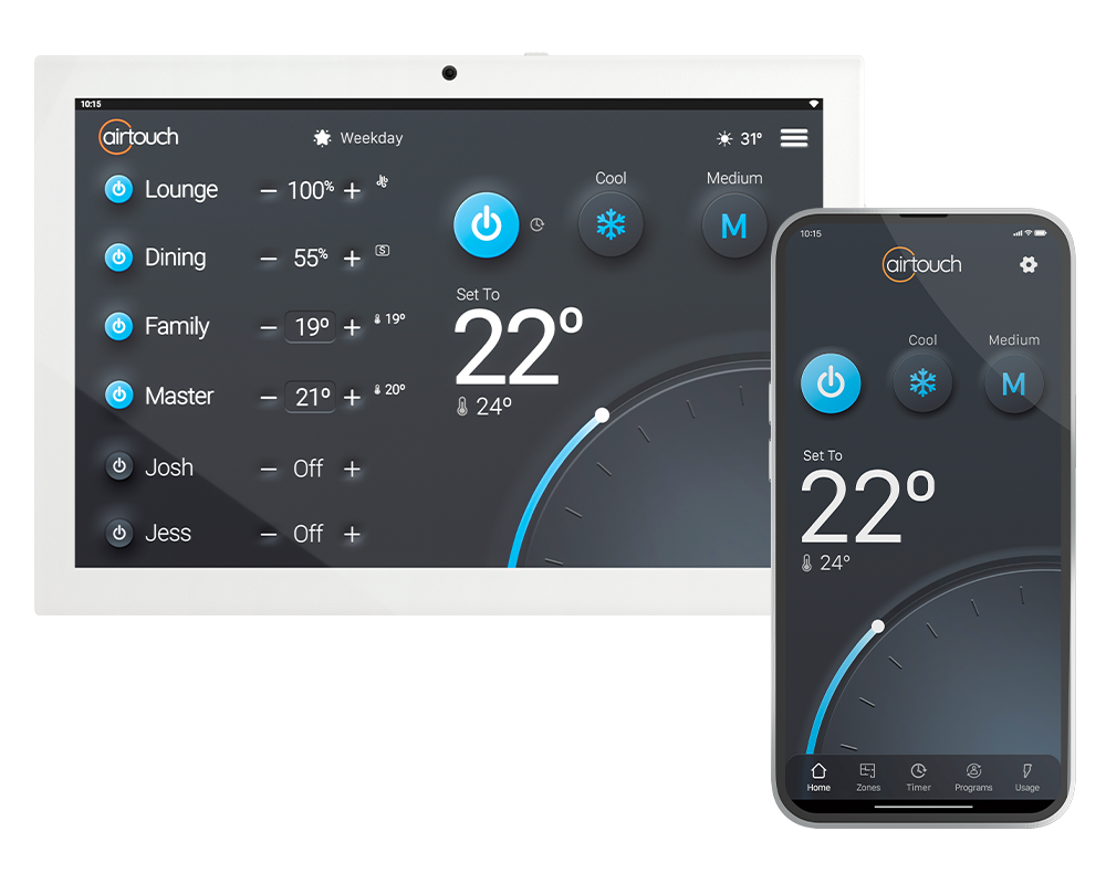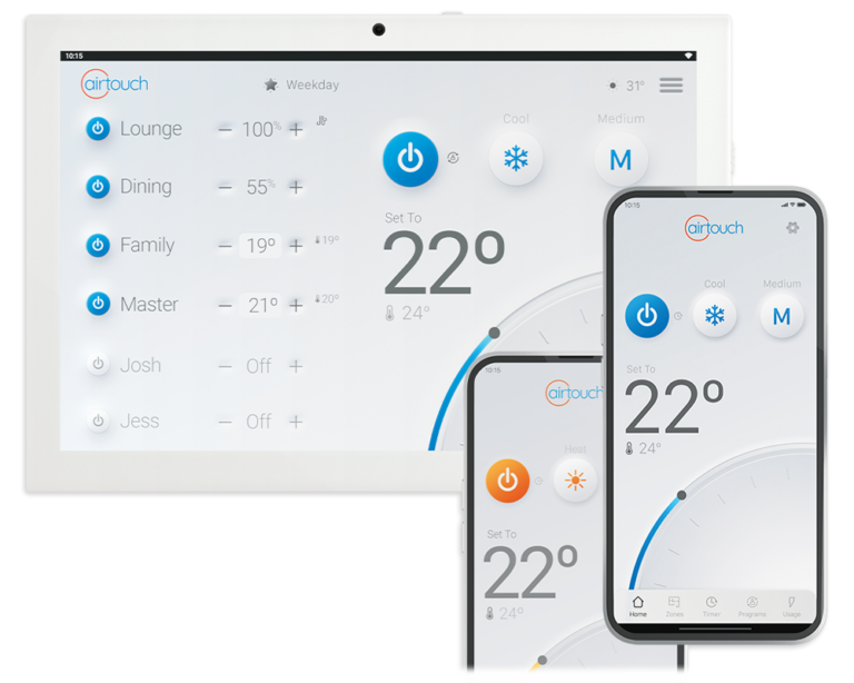 Smart phone app, wall console, switch or voice control. However you choose to control your smart home, AirTouch will respond.